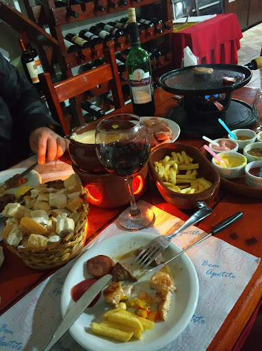 Restaurante simples, rústico, com atendimento rápido e cordial, porém atrapalhado: se você perguntar sobre um item qualquer do cardápio a três garçons diferentes, certamente vai receber três respostas diversas. Possui uma variedade de vinhos razoável, com rótulos nacionais, argentinos, chilenos e uns dois ou três uruguaios e portugueses. Entretanto, não dispõe de sommelier nem de qualquer pessoa que tenha um conhecimento sequer trivial sobre vinhos: os comentários se resumem a "este é bom, este é muito bom, este é bom". Os preços são bem genéricos, por grupo: 52,90 os nacionais, 62,90 os importados e 72,90 os "reservados" - isto pode ser bom ou ruim, dependendo do conhecimento que o cliente tiver sobre vinhos. Assim como todos os outros restaurantes de Campos do Jordão, oferecem fondues de queijo, chocolate e ... óleo! Não sei se esta é a forma tradicional ou "correta" de se servir fondue, mas afundar e fritar as carnes em uma cumbuca de ferro com óleo borbulhante tira todo o encanto da ocasião. Ademais, o sabor fica comprometido - melhor seria servi-la com um vinho temperado. As carnes e frango servidos também deixam a desejar: cubos irregulares, cheios de gordura, o que denuncia cortes menos nobres. No fim, cobram 62,00 por casal ou 59,80 por pessoa no rodízio com as três opções - barato se comparado aos absurdos cobrados em outros restaurantes da região, mas caro em vista da qualidade. Não foi de todo ruim, mas...