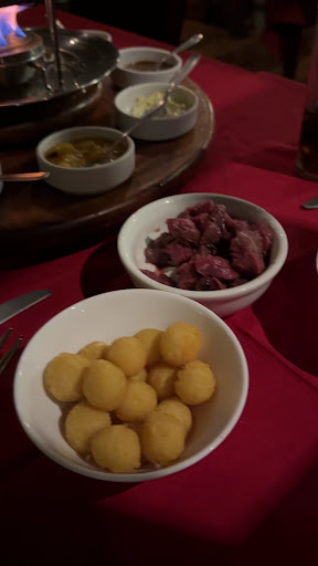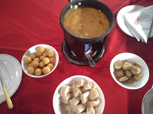 Read moreEstávamos em um casal e duas crianças. Chegamos no restaurante um pouco depois das 19h, estava bem tranquilo. Escolhemos uma mesa no mezanino, havia mantas para nos aquecer. Pedimos foundue de queijo, veio acompanhado de pães e batatas noisete crocantes e quentinhas. Como veio uma quantidade farta de foundue, foi preciso repor a cesta de pães e as batatas, o que foi feito sem custo adicional. O foundue estava divino e podíamos sentir o sabor de cada queijo que compunha a receita. Depois pedimos meia porção de foundue de carne (filé mignon), para ser fritado no óleo de coco, acompanhado de 8 tipos de molho. A carne estava saborosa e os molhos super fresquinhos. De sobremesa pedimos foundue de chocolate, que veio acompanhado de frutas frescas e mini churros quentinhos. Estava uma delícia! O atendimento foi perfeito, o garçom que nos serviu estava sempre atento. Gastamos cerca de R$500. Ficou mais caro do que os vários restaurantes que servem sequência de foundues ou rodízio com preço fechado, mas valeu a pena, pois sentimos a diferença na qualidade dos alimentos, no ambiente limpo e de bom gosto e no atendimento...