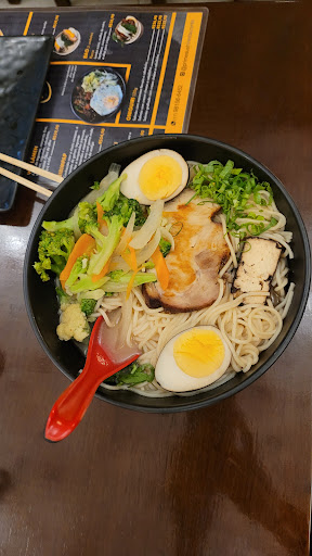 Sobre a comida, provamos três lámen (dois com carne e um vegetariano) e todos estavam muito suaves, quase sem tempero. O lámen precisa ter um sabor autêntico, que nos remeta à culinária japonesa, o que não aconteceu. A ervilha estava um pouco dura, o shimeji foi o único ingrediente com sabor marcante, e o macarrão veio em grande quantidade, mas com poucos acompanhamentos. O ovo e o tofu, que experimentei separadamente (pois não veio no lámen vegetariano, mas poderia ter vindo), tinham um gosto muito forte de vinagre. Também pedi um yakisoba para levar e ao provar em casa, esse estava bem gostoso.