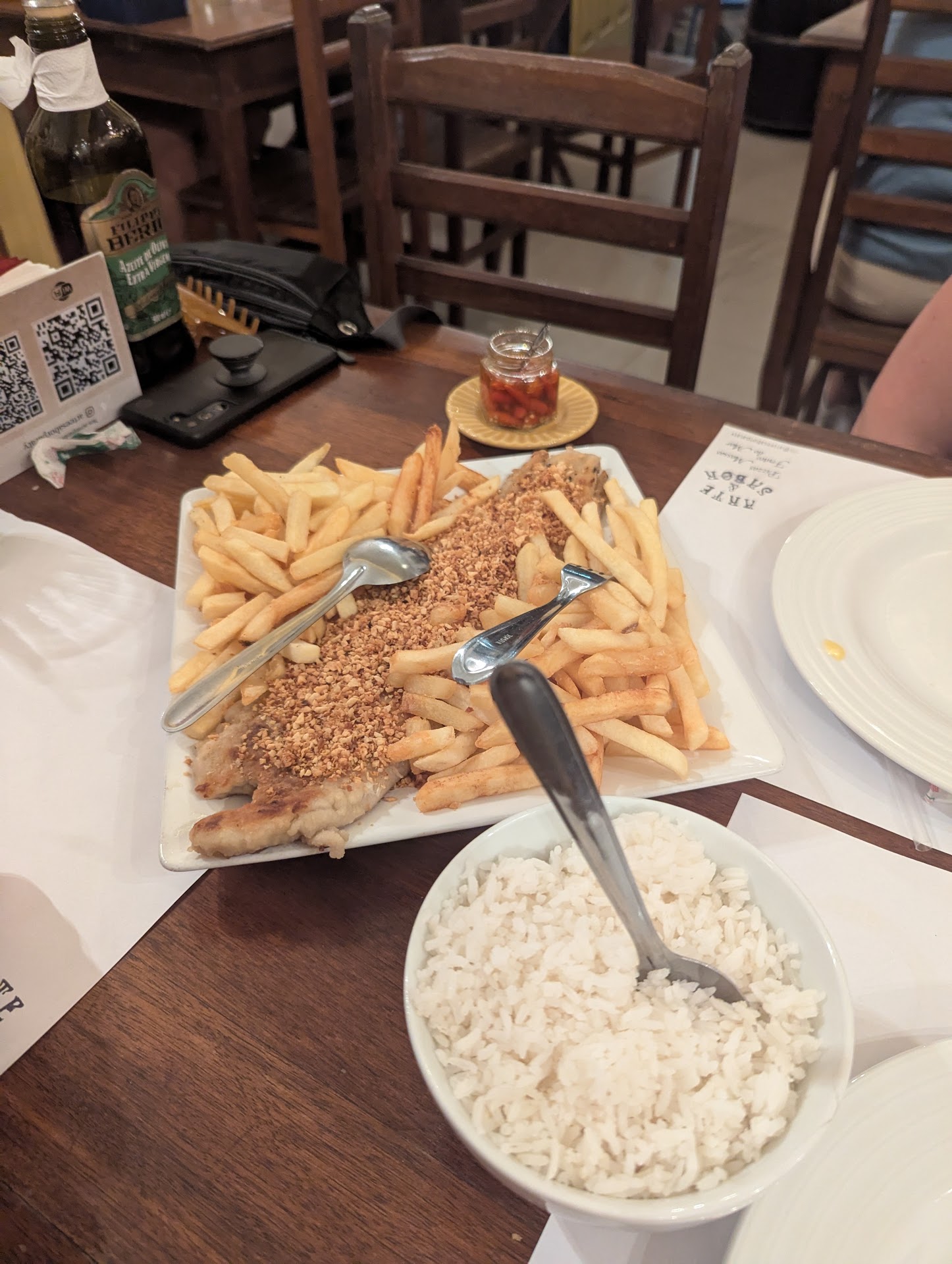 Read moreWas highly recommended to go here but was a little disappointed We were a party of 6 and there wasn’t any tables big enough so they put together one by the door and people kept banging into me all night as there were walking past the staff were nice and helpful and the food was nice but simple, the local fish piexe paraty dish was ok the fish was dry and didn’t have much flavour and the rice was dry but at least had some flavour and it was served in a white cream with a few thin slices of carrot and some almonds i wish there were some proper vegetables its too much beige also would be great is there were more vegan and vegetarian option as there was only one vegan option the fish with garlic was good but came with rice and fries nothing else and it was a bit too much beige and carbs so would have been nice to have veggies on the side at...