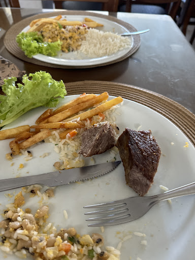Péssimo ambiente ! E olhe que já frequentava desde quando era criança mas recentemente em 2025 decaiu muito no quesito qualidade e atendimento. Fui ontem , dia 11 de maio ( domingo) que estava comemorando o dia das mães, até aí ok . Chegando lá me deparo com um espaço aberto mas já comportando mais da capacidade máxima , eu tive o desgosto que ir neste fático dia , que além de estar com o estabelecimento cheio , os garçons aparentemente estavam desorientados e atrapalhando todos os pedidos de consumação no local , minha mãe e minha irmã pediram um bode mas acabaram comendo o resto do que uma mesa ao lado , pois esta família estava COM A NOSSA COMIDA,e se não fosse minha irmã identificar que eles que chegaram 1h após de nós chegarmos no local , eles riram da nossa cara , e ainda assim, de fato a nossa comida chegou muito depois do horário geralmente programado , chegamos lá por volta das 12h30 e só fomos de fato almoçar às 14h10 !! Não somente isso , fui tirar satisfação com a dona do estabelecimento que estava presente e ela simplesmente ignorou totalmente a situação e não falou nenhuma palavra sequer . Enquanto um funcionário estava se queixando do seu companheiro de trabalho que atrapalhou os pedidos e culpou o outro funcionário, ao invés de agilizar o pedido ou se redimir ofertando uma cortesia , ele seguiu normalmente para o seu trabalho. Após 30 minutos deste momento, o então almoço chegou e exatamente às 14h30 aconteceu um terrível acidente de carro enfrente ao estabelecimento, o restaurante todo parou e pasmem nenhum funcionário e nem a dona sequer ofereceu ajuda à uma jovem que tinha estacionado na frente do estabelecimento já que ela iria consumir no local , ela teve ferimentos leves na mão ,mas mesmo assim o impacto foi muito forte no carro e detonou literalmente os faróis, a placa e tudo que estivesse na frente e laterais do carro ficaram amassados .Até então tudo ok , na hora de pagamos, o garçom fez questão de comentar o valor que eu tinha consumido e fez um comentário desnecessário falando do meu corpo e me comparando com os outros clientes, alegando que tinha comido bem mas se eu gorda estava feliz , que continuasse comendo e sendo feliz... Enfim , totalmente desnecessário essa opinião dele gordofóbica e bastante mal educada , ficamos constrangidas e tivemos que rir forçadamente , até a família que estava do nosso lado literalmente porque estávamos todos espremidos naquele espaço, olhou com um certo deboche e vergonha alheia da situação. E digo mais , nunca mais frequento este estabelecimento! Já teve a sua época de apreciação e valorização ao cliente e olhe que eu conheço este restaurante desde 2014 , mas enfim, eu estou abismada e bastante chateada com as situações desconfortáveis que passamos em um dia que seria especial já que era feriado do dia das mães... E pra completar gastamos muito mais do que se esperado, porque além da comida ser cara é ruim e possui pouquíssima variedade principalmente no self service !! Sem falar na presença de pombos e...