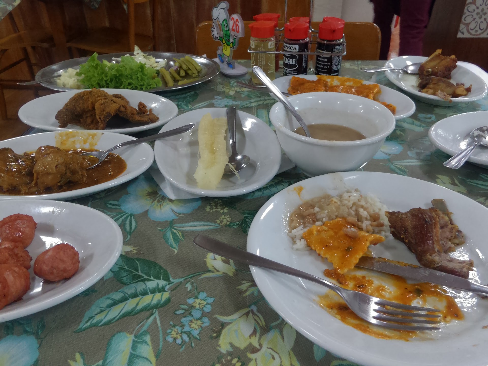 Read moreO ambiente em si é normal, como qualquer outro. A comida não era ruim, até grande quantidade de pratos (em variedade e quantidade mesmo). Infelizmente o atendimento foi péssimo. A atendente de mesa não explicou corretamente como era o sistema de almoço (buffet) e, ao final, foi que tudo saiu do controle da gerência. Questionamos a respeito, informamos que não tínhamos conhecimento do serviço como ela estava indicando naquele momento. Ela se exaltou bastante ao ser questionada, causando um certo constrangimento para minha família (que apenas questionou a forma de serviço). Fiquem atentos ao realizar pedidos de almoço no local para evitar qualquer constrangimento. No mais o CDC é claro sobre a taxação e o que pertence a quem....