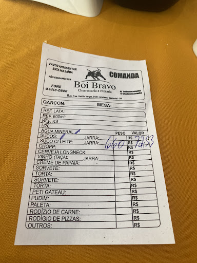 Read moreSegunda vez que almoço nessa churrascaria e confesso que senti diferença. Além do péssimo atendimento pois trabalham com um garçom que serve carne e bebidas. Hj precisei por várias vezes chamar esse garçom, o mesmo estava conversando na churrasqueira e custou a notar que eu havia entrado no estabelecimento e precisava ser atendida. Perguntando sobre o rodízio ele nos disse que pelo adiantado da hora 14 horas, não poderia nos servir o primeiro corte das peças. 14 horas não é tarde, mas enfim... O preço do rodízio não vale...