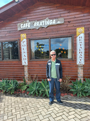 Descemos a Serra gaúcha e paramos para almoço. O café Aratiba serve comida caseira servida em um grande fogão o que mantém aquecido. Ao lado tem opções pra café: diversos tipo de pães, queijos, imbutidos (Morcilha branca e preta, salame,copa), mel, doces e derivados de leite. Tipo nata, manteiga e ricota. E umas tortas deliciosas. Vc serve o que lhe agrada e pesa. O Valor do kilo do café colonial hj julho 2023 foi de 62,00 reais. Espaço aconchegante e acolhedor. Eles tem serviço de hospedagem pet e atendimento veterinario. Banheiros enormes, trocador na ante sala dos banheiros. Estacionamento amplo e parte coberta com pareiras. Tem a opçao de prato feito por 25 reais. Na varanda tem placa com diversas informações . Tem grande variedade de produtos a venda pra levar na viagem. Fica a dois minutos antes(pra quem desce) do mirante da rota da serra(onde tem o balanço do infinito e outras atrações. E dois...