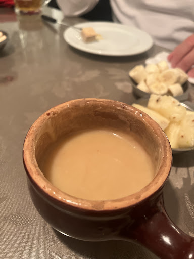 Avaliação do restaurante de fondue (08/09) O ambiente deixou bastante a desejar. A decoração é brega e feia, o espaço não tem ventilação adequada e o excesso de fumaça faz com que o cliente saia praticamente defumado. O local aparenta descuido: mesas engorduradas, cadeiras desconfortáveis e uma atmosfera pouco aconchegante. O fondue de queijo foi decepcionante — mais parecia uma mistura de queijo com amido do que queijo de verdade. O fondue de chocolate branco era de qualidade duvidosa, extremamente açucarado, com cor estranha e sabor artificial, dificilmente poderia ser chamado de chocolate. O chocolate preto era um pouco melhor, mas ainda assim não era puro, lembrando mais um caramelo quando servia no prato. As carnes não são de excelente qualidade, mas podem ser consideradas aceitáveis. Outro ponto negativo foi a cobrança obrigatória de R$10 por pessoa de couvert artístico, além da taxa de 10% de serviço. O cantor presente no dia 08/09 foi péssimo: cantou apenas quatro músicas, com intervalos de 20 minutos entre elas, sem finalizar nenhuma delas. Não havia música ambiente para compensar a ausência de qualidade da apresentação. Os garçons, embora em número insuficiente para o movimento da casa, foram educados e solícitos, o que foi o ponto positivo da noite. Resumo: 👉 Ambiente desconfortável, decoração brega e local sem ventilação. 👉 Fondue de baixa qualidade, especialmente o de queijo e o chocolate branco. 👉 Couvert artístico e taxa de serviço obrigatórios, sem justificativa pela qualidade oferecida. 👉 Atendimento atencioso, mas equipe reduzida. 👉 Experiência geral decepcionante. Pelo preço pago, compensa procurarem outra opção. Com certeza pagando um pouco a mais, a qualidade irá compensar.
