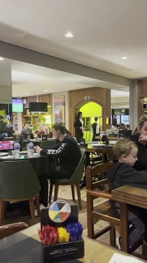 Eu preciso vir dar meu FEEDBACK, nunca vim à gramado, está sendo minha primeira vez! Eu já tinha tudo programado para o dia de sábado a noite, e pizza não estava incluído. O restaurante que tínhamos programado estava mt lotado e meu esposo, e mais 1 casal com 1 bebê decidimos ir para outro lugar e lembrei que tinha visto que a Scur tinha boas recomendações, decidimos ir. Ela fica bem na principal da cidade, quando chegamos no local umas 19h30, 29/04 é considerada alta temporada, o caos é pra estacionar? Mas tirando isso enquanto vc acha um lugar pra estacionar vai apreciaando a cidade que é LINDA! Enfim chegamos e tívemos que esperar 1 hora pra esperar pra entrar, estava LOTADO. O bom que vai liberando a mesa e eles já irão chamando. Sentamos à mesa e preciso falar eobre a atenção que estavam dando pra o bebê de 1 aninho que estava meio “chatinho” querendo chorar e nao querendo ficar no colo, uma garçonete nos surpreendeu trazendo um papel e lapis de cor para o bb, pedimos uma água pro bb e elas nos trouxe um copo de acrílico com figuras de pizza para chamar atenção do bb, tudo para deixar ele quietinho(quem é mãe sabe que aa vezes bb fixa chatinho mesmo), nós amamos a maneira que lidaram com isso! As pizzas è SURREAL! Elas nunca se repetiam, TODAS AS PIZZAS UMA DELICIA, não veio nenhuma ruim, sério! Da doce ou salgada! Valeu a pena toda espera! Super valeu a pena pagar 240 por casal! O rodízio custa 99 e pedimos 6 cocas por casal, não sei se cobraram taxa, mas vale a pena pagar! Fomos bem recepcionado por TODOS! Parabéns. Hoje no domingo queremos ir almoçar na pizzaria de novo kkkk não sei se abre pra almoço rs Vou reforçar meus parabéns pra TODOS os colaboradores e pela agilidade, valeu cada minuto de espera. Eu voltaria 1.000 vezes. Ob: o pedido de bebidas é feita nesse tablet, e nossas bebidas não...