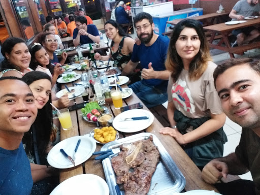 Fui na madrugada após o trabalho, porta fechada, ninguém nos recebe e vc não sabe se estão ou não atendendo... Eu e minha colega escolhemos e serviram... Arroz frio, farofa, salada, polenta e 2 pedaços de costela... Isso mesmo, 2 pedaços para 2 pessoas... Enquanto terminavamos de comer arroz com farofa, pq a carne já tinha acabado a muito tempo... Abasteceram mais 2 pedaços... Pedimos a conta e quase caímos duras! 135 reais por arroz frio, polenta gordurosa e 3 pedaços de costela fina e pequena! Pedi para embalar o que sobrou pois tinha vindo a porção para 2, e a resposta foi NÃO, pq? Pq era rodízio.... Nunca vi um Rodízio de 4 pedaços de carne... E ainda assim o fato de eu não poder levar pagando aquele absurdo foi o que me deixou Extremamente triste e brava, pq quando perguntei se iriam descartar a comida, foi nítido que mentiram, então o que me leva a crer que.... Em plena pandemia, tiraram o nosso rim e ainda não podemos levar pelo que pagamos e iriam aproveitar a comida que ficou na mesa para as próximas pessoas... Não volto, não recomendo,...