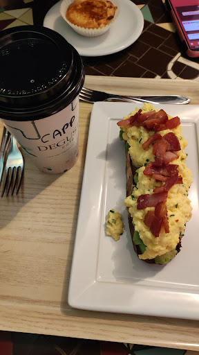 Visitei o café no período do almoço, tinha uma atendente de cabelo colorido no caixa muito educada e simpática, mais dois confeiteiros, um homem e uma mulher (Pelo oq eu percebi) com eles não tive contato, e mais outro atendente que chamava na hora de pegar o seu pedido, esse era o poço da mal educação, cara fechada, como se tivesse fazendo um favor, e aquele olhar que passa superioridade, não precisa pegar o cliente no colo, mas também a forma de falar poderia ser mais simpático e solicito, entendo que nem todas as pessoas tem essa habilidade, mas ai é simples, NÃO TRABALHE COM O PUBLICO, vai pra cozinha sei la, um lugar que não tenha atendimento direto com o publico, pois isso acaba descredibilizando muito a imagem do café.