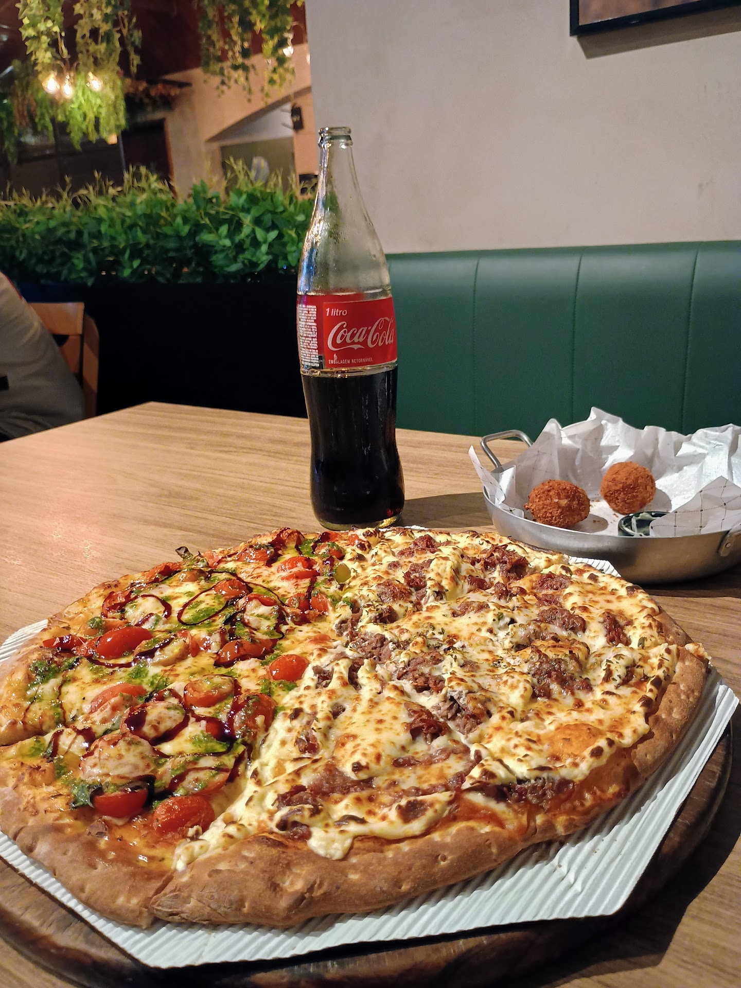 Como morador do Cajuru há alguns anos, já ouvi boas recomendações dessa Pizzaria. Finalmente fui conhecê-la pessoalmente. A massa da pizza é muito boa e o recheio é caprichado. Comemos uma pizza BIG, meia quatro queijos, meio a moda da casa, em três adultos e duas crianças. Estava ótima.