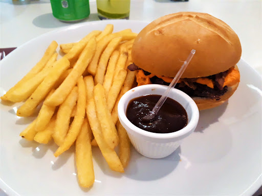 When it comes to food and drinks: We had a salad with chicken stripes, then a suco maracuja, in other words a passion fruit juice, and on the other hand a burger with bacon, cheese, and French fries and BBQ sauce together with a fresh cold beer. Our meals and drinks were very delicious.