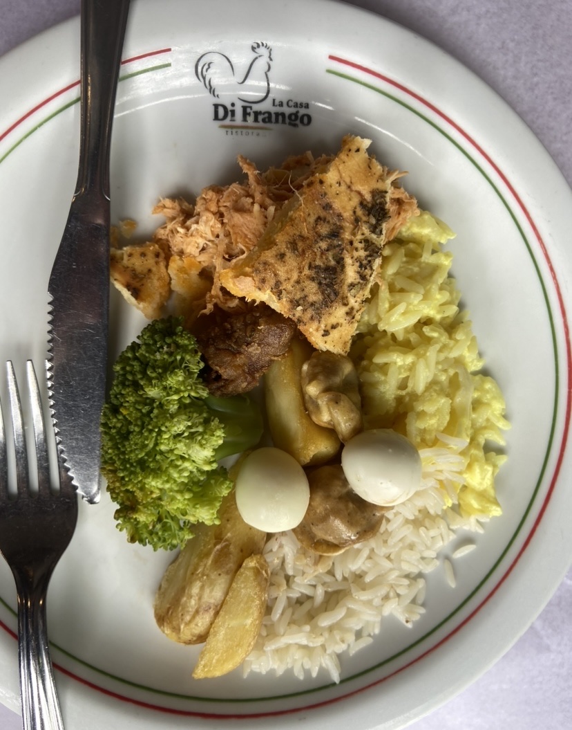 Hora de avaliar esse clássico restaurante. Hoje, aos meus 35 anos, lembro-me desde a infância, quando frequentava com meus pais, do sabor inesquecível dos frangos, coração e da famosa polenta. À primeira vista, a casa parece ter parado no tempo. A decoração, mesas e cadeiras parecem ser as mesmas da minha infância, merecendo uma renovação para eliminar o aspecto “antigo”. Optei pelo rodízio, que inclui buffet, massas, pizzas (doces e salgadas) e carnes, que definitivamente não são o ponto mais forte da casa. São pouquíssimas opções, mas pelo menos todas estavam bem feitas e saborosas. Destaco a alcatra e o coração empanados como os melhores. A pizza é gostosa, mas segue a receita básica, massa fina, queijo e recheio, não espere nada surpreendente. O ponto alto são as massas, onde a casa se destaca, oferecendo diversas opções e a possibilidade de montar seu próprio prato com o tipo de macarrão, ingredientes, temperos e molho, tornando a experiência ainda mais agradável. Considerando o valor do rodízio, vale muito a pena, é acessível e satisfatório. O que impediu de ser uma experiência perfeita foram os garçons do rodízio desatentos. Percebendo a falta de atenção, reclamei com a gerência e o problema foi resolvido imediatamente. Porém, isso pode deixar muitos clientes insatisfeitos, pois é frustrante estar com vontade de comer algo e o garçom passar reto sem ao menos notar a sua...