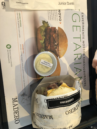 Read moreParamos para comer por que meu filho sempre via as placas do Madeiro na estrada para Curitiba. O restaurante fica um pouco escondido em um canto dos fundos do posto Quinta, deveriam fazer um letreiro bem alto e iluminado. O ambiente segue o padrão da rede, charmoso como sempre, dentro de seu padrão rústico/minimalista. Minha esposa pediu um chope que veio em uma caneca congelada e estava muito bom. A Soda Madeiro de maça verde poderia receber um pouco mais de “maça verde” no sabor. Os hambúrgueres de Carneiro estavam bons como sempre. Minha esposa achou muito crua a carne, a atendente prontamente aceitou passar melhor (na verdade trouxe um novo!), que não mudou muuuuito, mas valeu a intenção e ganhou a 5ª estrela pelo esforço. Não hesitem...