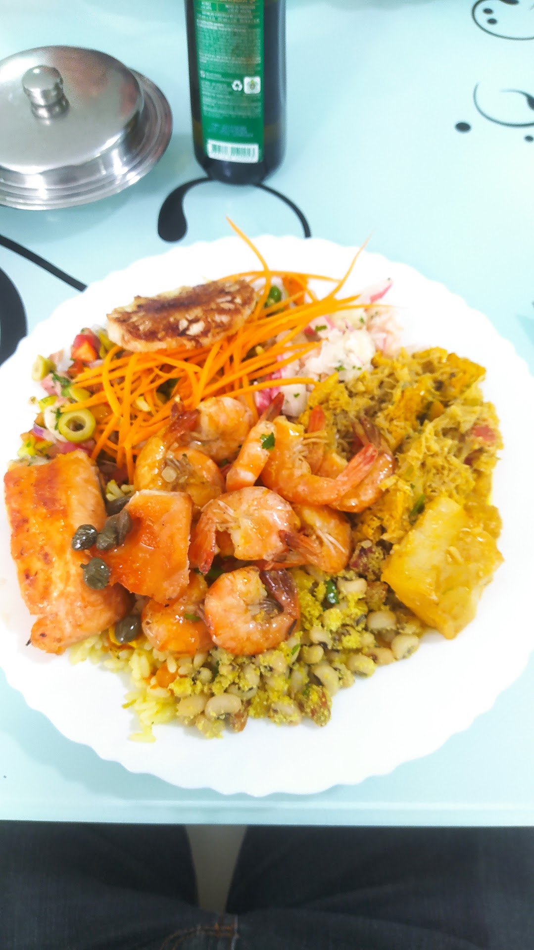Além do atendimento excelente, possui ótima gama de opções de refeições e para minha felicidade, único restaurante até hoje, aqui em Feira que não preciso pedir desconto para vegetariano, pois eles adicionam na balança.Vale ressaltar o atendimento solícito, próximo, dos funcionários para com os clientes e do restaurante para com os funcionários (vi eles almoçando em horário normal, visível para todos e não escondidos na cozinha), além do rasta que ajuda no estacionamento, pessoa maravilhosa! Como ponto negativo, aquele aquário pequeno para carpas gigantes, embalagens desnecessárias de plástico para guardar talheres, quando poderia usar sempre papel. Isto posto, saio sempre satisfeita,...