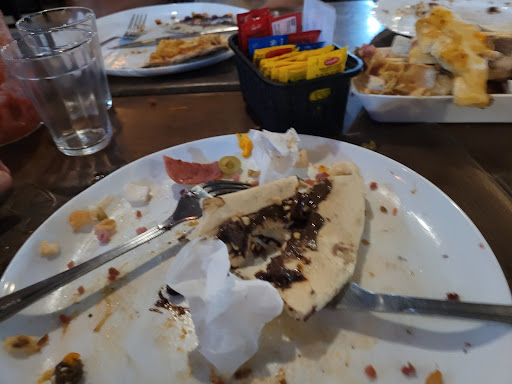 Vinimos al restaurante por que se veía de calidad y parecía que brindaba un buen servicio, resulta que recientemente cambio de dueño y la buena reputación que tenía se desplomó. El precio es 50 reales (lo cual es bastante alto comparado con la competencia de enfrente), inicialmente íbamos a ser 4 personas pero mi madre al ver que al llegar estuvimos esperando 10 minutos decidió mejor comprarse una comida en otro comercio, mi padre, novia y yo comimos, 1 rebanada de pizza en 30 minutos, nos quejamos (la gente de alrededor parecía estar de acuerdo) y se movilizó un poco mas (pero no mucho), al final nos quedamos tanto tiempo que el restaurante se empezó a vaciar (conste que no estaba muy lleno de gente) y el servicio mejoro, empezaron a aparecer nuevos sabores (no muchos, además muchos se repetían) y la pizza era extremadamente salada, no lo recomiendo para personas hipertensas (no se si la gente de Brasil come comida con mucha sal o es una estrategia para consumir mas bebida, en varios restaurantes noté que la comida es muy salada). ¡Hora del postre! Pizza de chocolate, no estaba derretido pero estaba rica, hay otra que es exactamente igual pero con un poquito de chocolate blanco adicional y por ultimo probe una con helado (también había de açaí pero estaba que reventaba). Bueno por último cabe destacar que hay wifi (hay que pedir la contraseña y la contraseña es 'skolbeats')