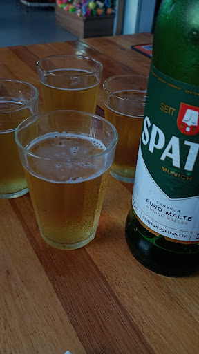 Sentamos para comer e ao nosso lado haviam senhores bebendo cerveja, rindo e falando alto, junto com um menino que parecia ser menor de idade e que também estava bebendo a cerveja!