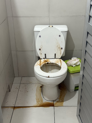 Já estava bem desagradável para nós, quando resolvemos ir ao banheiro antes de ir embora. Banheiro masculino estava sujo. O feminino das 4 cabines, 2 estavam fechadas interditadas. As duas abertas simplesmente não se encontravam próprias para um uso sadio de ser humano (vide foto)