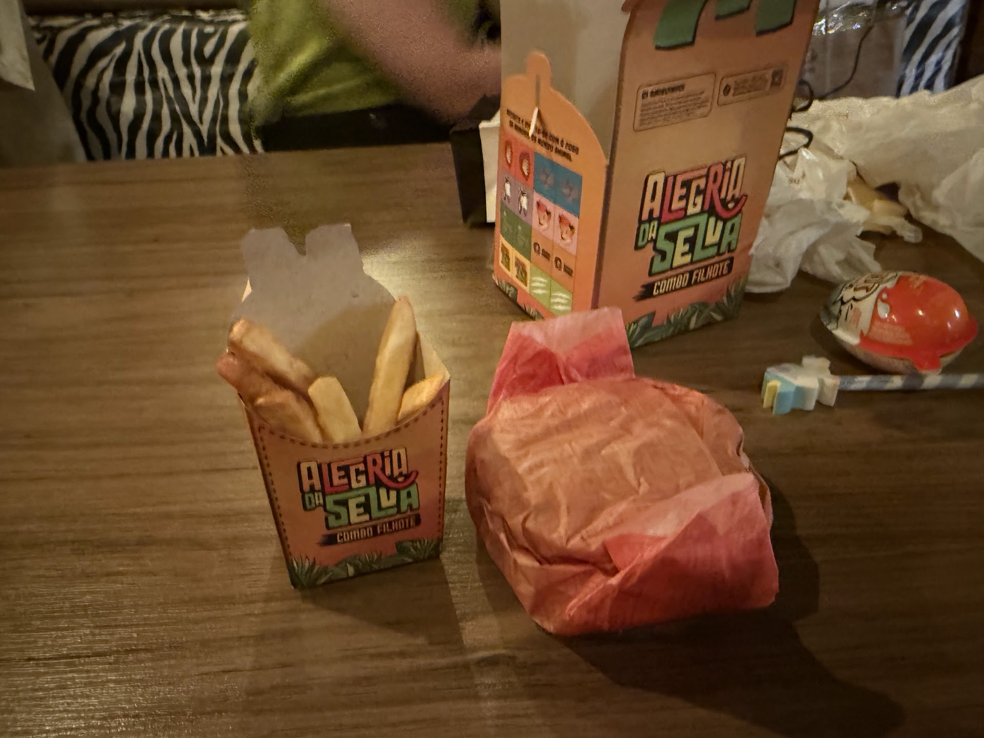 Optamos pelo prato mais conhecido da casa, batata frita com carnes e molho, mas infelizmente a carne estava muito dura. Além disso, fomos pegos de surpresa quando retiraram meu filho de 4 anos da área kids sem aviso prévio, pois criaram uma nova regra de separação por faixa etária com tempo (?!). Deixaram a minha filha de 7 anos brincando e tiraram o meu mais novo (separaram os irmãos!!!!!) Ele obviamente não entendeu o que estava acontecendo e muito menos eu, que por não saber de nada, não pude ajudá-lo a entender. Isso causou confusão para ele e frustração para nós. Lembrando, NÃO fomos informados dessa mudança e deixei os dois juntos (com pulseira de identificação e idades) na área kids. A recreadora não me falou absolutamente nada sobre isso quando os deixei. Os funcionários nem levaram a criança até mim, ele ficou sozinho fora do espaço kids em que eu o deixei.
