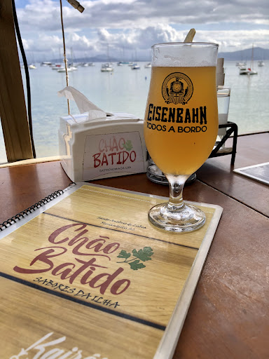 Se você está procurando um local com boa comida, agradável, ao ar livre e de frente para o mar, esse restaurante é uma excelente opção. Ele está localizado em uma rua super calma que possui um deck na calçada de frente para o mar. Há vários outros restaurantes ao lado, com opções no cardápio e preços muito similares, o que chamou a nossa atenção foi o atendimento do Chão Batido que se destacou logo de início. Paramos na porta apenas para olhar o cardápio e fomos muito bem recepcionados, o garçon super atencioso e paciente tirando nossas dúvidas. Gostaria de destacar o atendimento do Thiago que do início ao fim foi excepcional, sempre muito bem humorado e atencioso. Você pode ficar no deck ou dentro do restaurante, como preferir. Pedimos a opção de frutos do mar para 4 pessoas (camarões empanados, no alho e ao natural, lula empanada, ostras gratinadas e ao natural, filé de peixe da época empanado com molho farto de camarões, entre outras opções). A quantidade era realmente farta e muito bem preparada, super recomendo. Há um estacionamento ao lado. Voltarei...