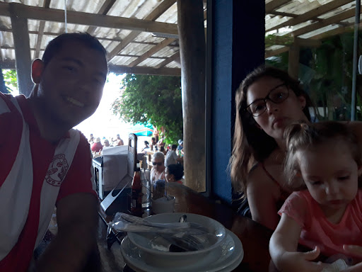 Read moreRestaurante um pouco mais caro para a região. Já estivemos outras vezes nessa região da ilha e tem restaurantes mais baratos, pois pagamos R$198,00, estávamos entre 3 adultos e 2 crianças, e comemos camarão a milanesa, porção de filés de peixe Carapeva (saboroso), arroz, batata frita, saladas, duas H2O. Comemos toda a comida servida, limpamos os pratos, e saímos do local satisfeitos. Se estivéssemos com muita fome, o almoço que nos foi servido não satisfaria. Ao pedirmos um desconto no pagamento em dinheiro o gerente não fez esforço para almoçarmos no local, disse que estava em alta temporada e não podia baixar o valor; mas como estávamos cansados ficamos ali mesmo. Em outros restaurantes (como o Índio) costumam oferecer descontos e servem bebidas cortesia. Só fornecem nota fiscal quando solicitado, mas te olham com cara estranha, enrolando para entregar a nota. Local ótimo para pular na água, do trapiche, para se banhar e brincar na água e areia com...