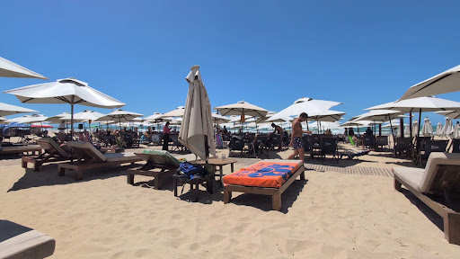 This is THE trendy place on Futuro beach, and probably for all Fortaleza. Trying to be like one of the fashionable beach clubs around the Mediterranean, but they don't quite succeed. Service is very uneven, often inattentive and incompetent, but some staff are very nice. Pricey. Food is sometimes a bit pretentious in it's ambition, but after trying quite a few things in the menue I must say it's usually pretty good, even delicious on a good day. But it's uneven, some negative surprises as well. The music is very loud and there are speakers everywhere, so you can't get away. If you're lucky the DJ is great (I had some very good experiences), but if you're not - well, you better bring earplugs. On the weekend the place is packed, so you might not find a seat, and service can be really inadequate . Too many waiters just running around in confusion, never attentive to the guests. In the week this place is a lot nicer, so I recommend avoiding the weekend. This is where the young and beautiful (who can afford it) go. Hence also an older crowd of gay men, checking out the eye candy. Almost a gay place, but not quite, it's mixed. Well placed though, good spot and closer to the water than other beach places (the Futuro beach is quite wide).