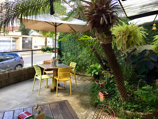 Gosto de sentar sozinha, ouvir o jazz baixinho da playlist que sempre toca e observar os passarinhos entre as muitas plantas. Amo toda a equipe, o sax antigo na parede, o melhor brownie da cidade e, com certeza, a empada de palmito.