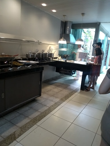 *Excelente, no meio do salão fui tirar uma dúvida com um garçom foi super gentil e educado. *Comida, perfeita, tudo uma delícia, tinha peixe, carne vermelha, macarrão preparado na hora, molho de 4 queijos que é o meu preferido, tudo muito limpinho, sem mosquitos, comida na temperatura ideal, churrasqueiro nota 10, cara gente boa e experimentei o famoso cupim no alho, maravilhoso que até repeti. *Ambiente, lindo e novinho. *Proprietário, fica no caixa e dar suporte no salão, que gente finíssima, fiz questão de chamá-lo para agradecer pela experiência que tivemos hoje.