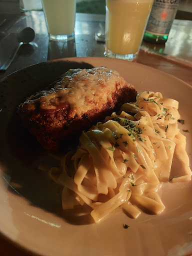 Sobre a comida em si, saí satisfeito com tudo. Deveria ter ido ao local antes. Pedi bolinho de peixe cremoso que estava sensacional. Depois um macarrão na manteiga de sálvia que estava perfeito, com parmegiana. E a sobremesa também, muito boa! Esse prato principal, é bem grande, dava praticamente pra ser dividido para dois.