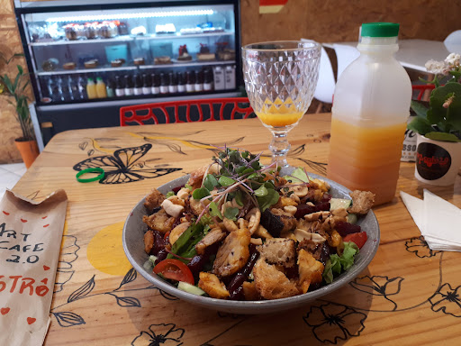 Read moreWe came to Art Cafe 2.0 with our friends James & Julia. I was interested in coming initially with my wife Thais as she is a big meat eater and I am vegan and this restaurant has many vegan options and big meat plates for my wife. I was so happy with the Jaca Sandwich I had 2 of them and the delicious vegan coxinhas which are the only the second vegan coxinhas I’ve ever had and the most delicious comparing the other option. Also the owners and staff speak English well making it easy to ask them questions about the vegan menu. Highly recommend you’ll have a great time in this intimate cafe with good music , beautiful paintings and a hand painted mural and the friendly staff! It’s a gem in Brazil in the heart of Balneario Camboriu only a block away from ATLANTICO Shopping mall. Two...