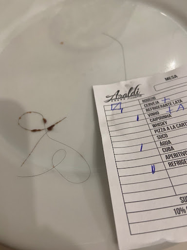 A pizza é muito boa, uma pena que o dono é um completo boçal. Solicitamos 4 rodízios e 1 pizza a la carte e o dono, quem nos fez o atendimento inicial, se negou dizendo que não poderia sem explicar o motivo (mesmo várias pizzas saindo para entrega), e ainda disse que sim, rindo, quando perguntamos se o certo seria pedir uma para viagem para a pessoa comer no carro ao invés de dentro do restaurante. Saiu dando as costas com um sorriso no rosto, sem anotar todas as bebidas da mesa, como se quisesse que fôssemos embora mesmo. Já tivemos problemas anteriores com o dono e é uma pena que a pessoa que mais deveria prezar por um bom atendimento seja um arrogante. Só não fomos embora por conta da forte chuva naquele momento. Pra piorar e fechar com chave de ouro, encontramos um cabelo nojento misturado dentro da pizza doce, conforme mostra a foto. Até tentaram amenizar o problema oferecendo um 1 rodízio de graça, mas não aceitamos porque todos consumiram, só gostaríamos de um atendimento e cuidado adequado com os clientes. Éramos clientes frequentes, principalmente delivery, mas não voltaremos a pedir. Com essa conduta, acabarão perdendo muita gente aos poucos, pois qualquer comércio depende do cuidado com os clientes. A estrela extra fica por conta do sabor da pizza e da tentativa de amenização, porque de resto a Araldi Pizzaria precisa...