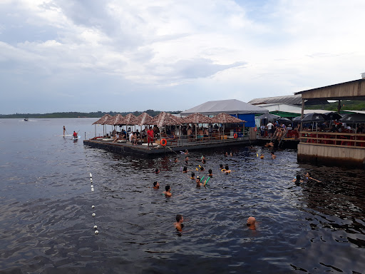 Read moreLocalizado no Rio Tarumã-Açu (afluente do Rio Negro), assim como outros tantos flutuantes que existem por lá, este local proporciona uma linda vista do rio e uma experiência bem diferente. Na realidade, trata-se de um bar flutuante, onde você pode comer, beber e tomar banho no rio com segurança, além de praticar stand-up; alugam-se pranchas no local. Achei os preços razoáveis. Consumi: suco de cupuaçu (R$8,00), x-ribeirinho (3 sanduíches pequenos com hamburger de tambaqui por R$26,00), que estavam deliciosos. Além disso, paguei o transfer de barco por R$8,00 (ida e volta). Fui sozinho, mas acho que é um passeio para ir acompanhado. Para ir foi fácil; peguei um Uber que deu uns R$30,00 saindo do Ibis Av. Djalma Batista. Mas para voltar foi super complicado; vi o Uber umas 17h30 e estava dando caríssimo e o Manaus Taxi não aparecia nenhum motorista. Uma funcionária de lá me disse que muitos motoristas não gostam de ir pra lá depois das 17h30 e ficam cancelando a corrida quando são chamados. Consegui voltar porque outro funcionário tinha o contato de outro Uber que tava por perto e me cobrou R$60,00 para voltar para meu destino. Portanto, para quem não está de carro, sugiro ir cedo para retornar cedo e, preferencialmente, acompanhado. Mas, no final, a...
