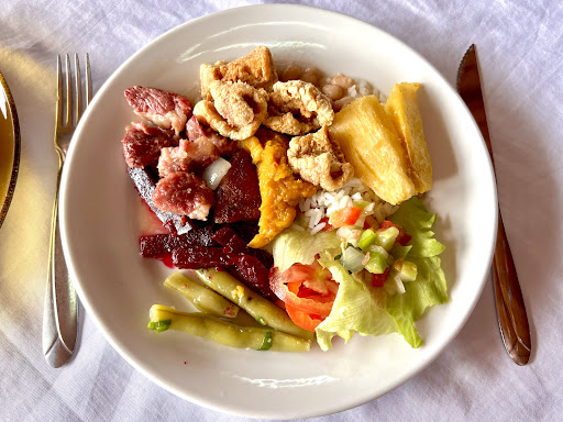 A nossa última experiência foi num almoço de domingo. Após o batizado da minha sobrinha Eva Maria, fomos almoçar em família. O buffet livre está 50$ por pessoa, funcionando no modelo self-service.