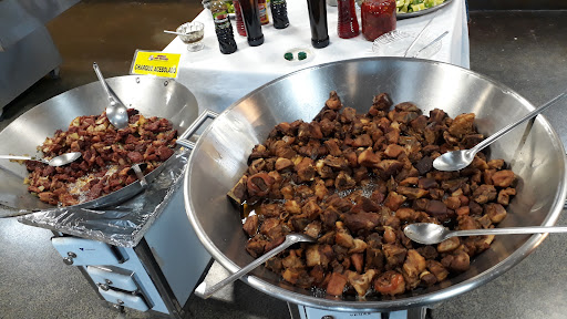 Read moreMuito bacana o ambiente, super familiar, espaçoso e organizado. O buffet com pratos variados, bem temperado e caseiro. Comida de excelente qualidade. O porco no tacho, a feijoada e o charque acebolado são divinos. Na churrasqueira tem linguiça apimentada, picanha e panceta super crocante! Que panceta!!! Cerveja um pouco cara. 39 reais o almoço tá num preço super acessível pra qualidade do almoço. Fiquei um pouco desconfortável com a segurança da cadeira de plástico, achei que iria quebrar devido ao piso um pouco liso e meu peso. Mas no fim descobrimos que tem cadeira de madeira pra quem quiser trocar. Vale super a pena pra um almoço de domingo com a família a preço acessível e garantia de bucho cheio com comida saborosa e...