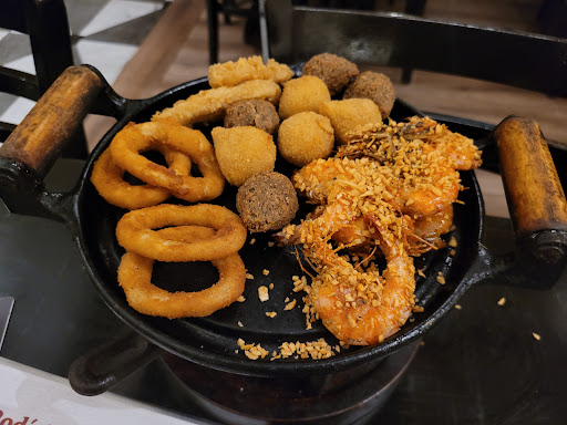 Read moreBoa noite, fomos passar o fim de semana em Petrópolis, a noite fomos procurar um lugar para lanchar, passamos na porta da petiscaria, onde um funcionário nos recepcionou, foi muito agradável, falando dos serviços oferecidos, acabamos ficando para o rodízio de pizzas, na terceira rodada de pizza, veio a de camarão com alho poró O meu pedaço estava bom, mas o da minha sobrinha e do seu namorado, o camarão estava com gosto e cheiro de podre, fazendo com que eles cuspissem no guardanapo, pedimos para chamar o gerente, onde o mesmo veio, mas ao falarmos do gosto e cheiro do camarão, ele nos falou assim!! O nosso camarão é fresco e o cheiro deve ser do tempero baiano... Pedimos que ele cheirasse o camarão que estava com cheiro de podre e ele mais uma vez disse que era cheiro do tempero, perguntou se queríamos outra pizza de camarão, aí falamos que não queríamos mais comer, então ele pegou o prato e levou para cozinha e não falou mais nada, nem uma desculpa, ou ao menos tentar nos agradar oferecendo uma outra sugestão, depois de 10 min, parados esperando alguma atitude cordial, pedimos a conta, aí vem ele com a conta que acabou causando um estresse, ficamos muito decepcionados, por ele não saber conduzir a situação e ainda questionar que o camarão não estava estragado, como se nós estivéssemos mentindo, lamentável toda situação, as demais pizzas estavam deliciosas, os garçons que nos atenderam foram muito atenciosos...o que poderia ser uma noite agradável, acabamos constrangidos e estressados com a falta de sensibilidade do...