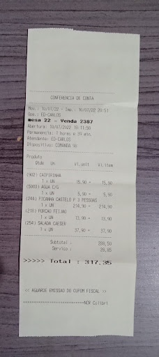 Quando pedimos nosso prato, foi solicitado que a carne fosse ao ponto, porém a carne veio crua e tivemos que mandar voltar. O Segundo atendente nos atendeu com muita atenção ( Um Sr Mais fortinho).