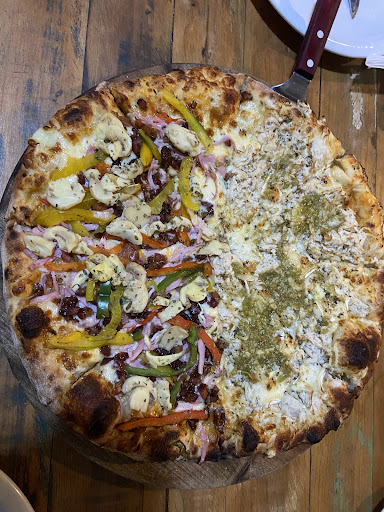O restaurante é enorme. Além de vários salões internos, existe uma grande varanda com mesas e mesas num jardim, embaixo de árvores. Possui uma grande loja de artigos de artesanato, antiquário, etc. O cardápio é bem extenso, com várias opções de sanduíches, lanches, porções e pratos, alguns deles autorais. Comemos "Filé de tilápia completo" (bom) e "Sanduíche na baguete, de pernil de porco desfiado, com picalilli e molho de mostarda escura" (muito bom). Bebemos "Cerveja de garrafa Anarquista IPA" (muito boa), "Suco de morango" e "Chope Anarquista IPA" (muito bom). Como sobremesa, fomos de "Torta de maçã" (muito boa). O serviço foi adequado e rápido. Os banheiros são bons e estavam limpos. Há bastante espaço para estacionamento. Os preços são moderados. Local recomendado.
