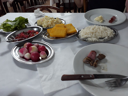Read moreMelhor experiência em termos de churrascaria na faixa de R$ 50,00 (contando o valor do mini-espeto e um refri) por pessoa aos domingos. Carne novinha e fresquinha, maionese saborosa e polenta quentinha. A dica é pegar o mini espeto (R$ 45) e não o completo (R$ 65) que basicamente difere na existência de picanha no rodízio do mais caro. Particularmente eu gosto muito de vazio e costela, então realmente não me prestaria em pagar R$ 20 a mais por uma pedaço de picanha. E também, se for para gastar isto iria na Freio de Ouro que custa R$ 67 aos domingos e então oferece muito mais cortes de carne e variedades no buffet e sobremesas. Mas enfim, para os R$ 45 do mini espeto as opções são excelentes: Vazio, maminha, costela, coração, frango, salsichão, lombo e vazio com alho, na mesa vem arroz, polenta maionese, banana frita, cebola em conserva e vinagrete. Apenas fique atento, pois não possui estacionamento, portanto o carro fica na rua se optar em...