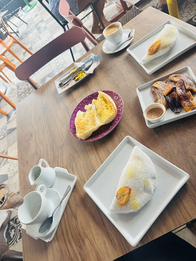 A comida? Simples, honesta e feita com carinho. Pedi tapioca recheada e umas fatias de banana caramelizada que chegaram macias, quentinhas e com sabor caseiro. O café veio no ponto, aroma encorpado, e a porção de pãozinho com manteiga tava ótima — nada sofisticado demais, só respeito pelo ingrediente. As porções têm tamanho correto pra compartilhar e dão sensação de bom custo-benefício: preço “OK”, justo pra qualidade servida.