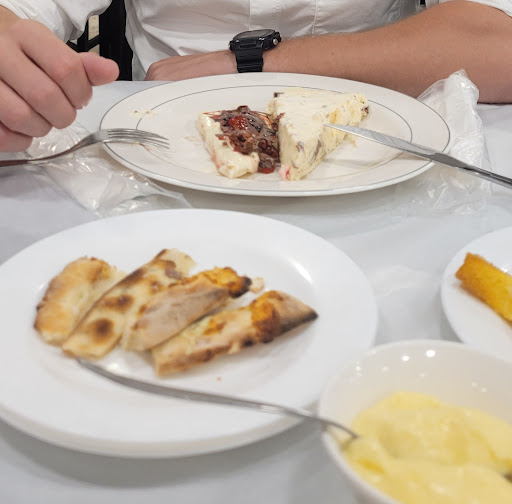 Read moreEssa avaliação se refere ao rodízio de pizza servido à noite. Visitamos o restaurante numa terça-feira e estava com quase todas as mesas ocupadas. Além de pizzas e calzones salgados e doces, o rodízio inclui buffet de saladas, polenta e batatas fritas e pratos quentes como massa à carbonara, ao alho e óleo, escondidinho de matambre, e algumas carnes fritas, como frango, porco e coraçãozinho, etc. Com exceção do buffet, tudo é servido na mesa. O atendimento é bom, os muitos garçons são cordiais e há uma boa organização do serviço, de forma que, mesmo com a casa cheia, nunca esperamos muito ou deixaram de nos servir. Percebe-se a supervisão dos processos. As primeiras fatias de pizza estavam boas, com borda inflada e bem tostadinha. A massa é aberta bem fininha e sabores como calabresa com cebola caramelizada e gorgonzola, pesto com nozes e figo com gorgonzola são ótimos. À medida que o movimento foi aumentando e com a chegada de grupos maiores, as pizzas foram vindo mais pálidas e já não estavam tão bem assadas. As pizzas doces são excessivamente doces e com massas praticamente cruas. Há muitos sabores que são só variações entre chocolate branco, ao leite e pastas prontas para confeitaria, além de sorvete de diferentes sabores. No geral, os ingredientes são de boa qualidade. O ambiente é bastante barulhento e tumultuado. A conta para duas pessoas + 3 latas de Coca-Cola foi de R$ 183,20. Na minha opinião, está visto. A experiência não foi suficiente para gerar o...