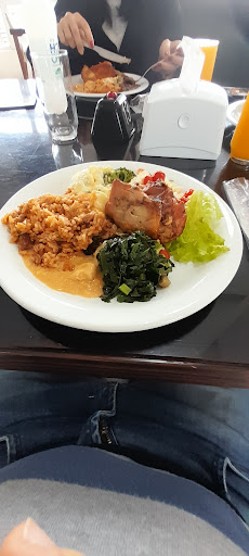 Duplo ambiente para lanches e almoço, amplo, organizado e higienizado. Buffet com variedade razoável, boa apresentação dos alimentos, os que consumi muito saborosos. Atendimento bom no primeiro momento. Detalhe importante, as 14:10 começaram a recolher os utensílios do buffet. Possuem acessibilidade. Banheiros amplos e bem higienizados. Estacionamento amplo e gratuito, porém sem cobertura.
