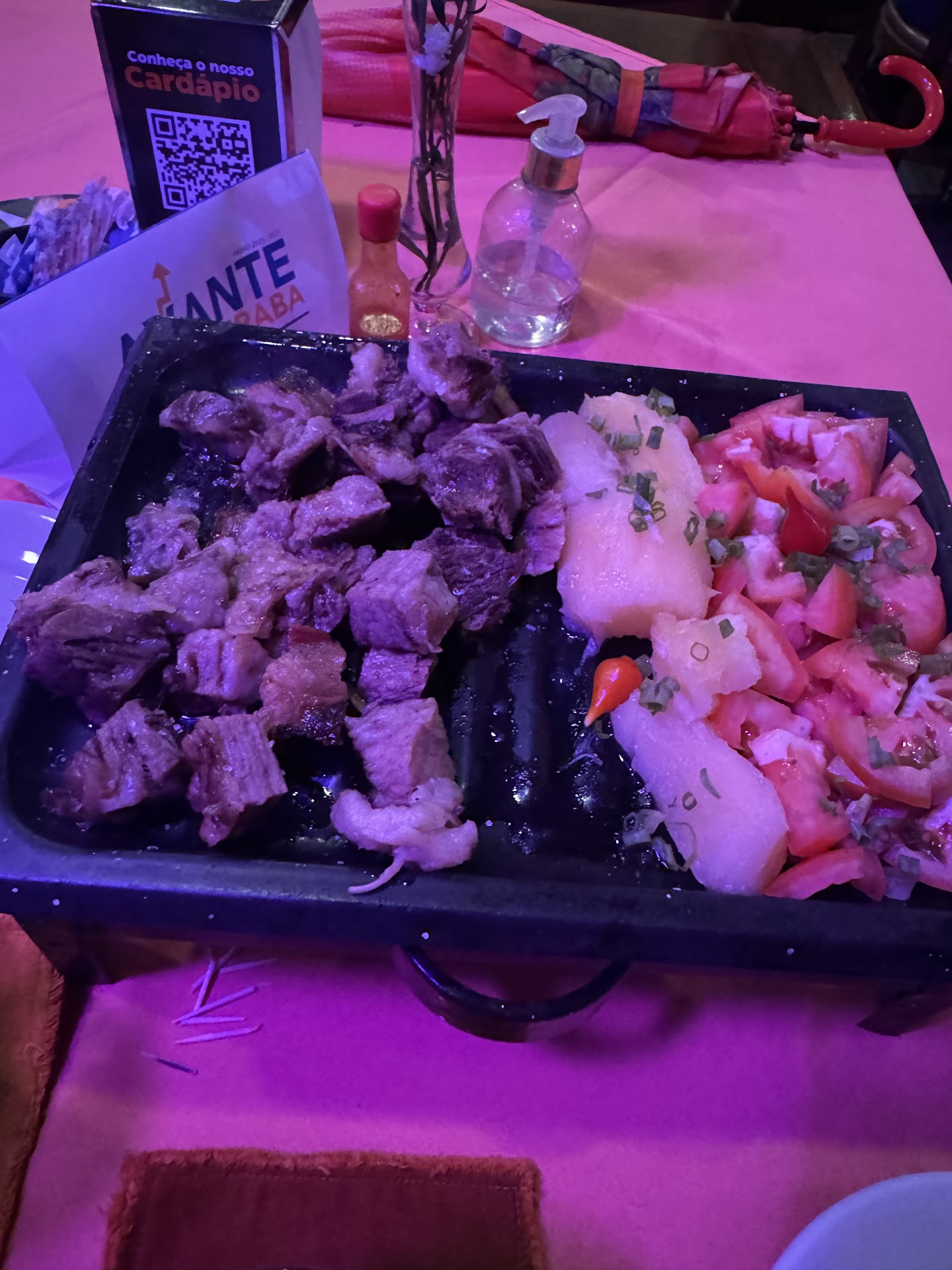 Read moreRestaurante horrível, chegamos nem sentamos direito, o garçom (Marquinhos, a não ser que passou o nome errado) já chegou 0 recepção, mostrou que só queria “vender” é nada mais, escolhemos o que queria, e ele ficou tirando todos de ideia, inclusive desdenhando do que íamos pedir por estar em muitas pessoas, mas beleza, falamos pra ele que íamos conversar entre sim e decidir, pois faltava gente pra chegar, a todo momento ia na mesa tirando a “paz de todos” querendo empurrar carne em gramas, pedi 200 gramas só pra mim, porque ninguém ia pedir na hora ia esperar o rapaz chegar, pedi porque estava com fome! Ele teve a falta de ética e falta de profissionalismo de falar “só” isso? não vai dar em nada”, um garçom competente anota pedido, jamais escolhe pelo cliente, aí ok pedimos picanha e costela, de tanto nós sentir pressionados, e além disso pra piorar a picanha estava queimada, e a costela também, totalmente sem tempero, somos de Uberlândia e aqui na nossa cidade e até pecado servir carne nesse estado! Nós cobraram 100$ de couvert sendo que estava passando na Tv, tv assisto em casa! Mas pra mim o cúmulo foi cobrar couvert de uma criança de 3 anos kkk, até então aceitável, aí o pedido chegou e ao invés de vir primeiro as bebidas, depois as guarnições e depois o prato principal que era a PICANHA! Mandaram primeiro a carne que estava com gosto forte de queimado, não tinha nada pra beber pois enrolaram pra mandar uma coca, aí pra completar o combo da noite, só mandaram a guarnição depois que acabou as carnes, nunca maisssss, seria uma estratégia pra fazer pedir mais carnes? Indignada, pior experiência da vida...