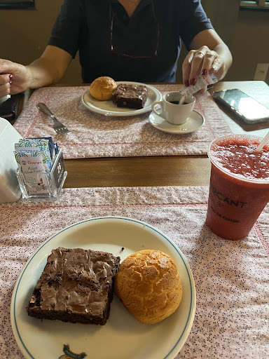 Tomamos 1 café grande, estava bom. Comemos um misto quente, 4 pães de queijo, 1 broa, o brunch e um frango fit para a viagem. O brunch estava gostoso com o ovo bem temperado e bacon bem fritinho. Comeria de novo. Os pães de queijos também estavam bons. Comeria de novo. A broa estava ok, nada demais. Não comeria novamente. O misto veio com 1 fatia de presunto e 1 de queijo, então achei que veio pouco. O sabor estava bom. Não comeria novamente.