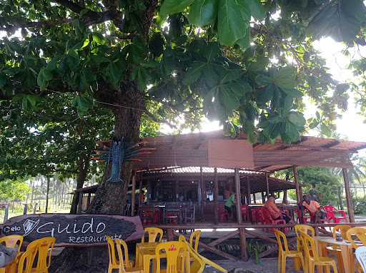 A praia e o local onde está a barraca do Guido são realmente muito bonitos, com um ambiente agradável e um mar tranquilo, sem grandes riscos. Minha nota para o ambiente é 5. No geral, os garçons foram simpáticos, mas quando o local ficou mais cheio, enfrentamos dificuldades para sermos atendidos. Apesar da cordialidade, o serviço ficou lento, e alguns pedidos demoraram a chegar. Por isso, dou nota 4 para o atendimento. De entrada, pedimos uma casquinha de siri, que estava saborosa. Como prato principal, optamos por experimentar a famosa lagosta, que é muito bem recomendada na região. Consultamos o garçom para saber qual seria a melhor escolha, já que o cardápio oferece opções como filé de lagosta com manteiga, lagosta com banana, lagosta grelhada, entre outros. Ele sugeriu o filé de lagosta na manteiga, mencionando que o prato viria com 500 gramas de filé. O prato custou R$ 279,90. No entanto, ao ser servido, ficamos imediatamente decepcionados com a quantidade, que parecia não ultrapassar 300 gramas (infelizmente não registramos com fotos para comprovar). Além disso, o sabor e a textura deixaram a desejar, com a lagosta apresentando uma consistência borrachuda. Acredito que o grande movimento do dia pode ter impactado a qualidade do preparo, considerando a fama que essa lagosta possui aqui na Bahia. No entanto, saímos com a sensação de que o prato é superestimado. Minha nota para a lagosta é 2.