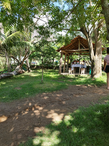 Read moreO local até que é bonito. Os atendentes e os donos são educados e simpáticos. A comida fica exposta em um fogão a lenha, tem uma boa variedade. Fui duas vezes, em uma delas a comida estava bem salgada. Para chegar o caminho não tem estrada de terra, mas é interessante ir pelas vias principais, pelos caminhos mais rápidos o trajeto tem trechos nada bonitos e a sinalização só existe já bem próximo ao local. Tem piscina natural paga a parte, passeio de cavalo (não é permitido galopar) e passeio de charrete também a parte. O parquinho é de uso livre. Só não vi nas resenhas as pessoas comentarem sobre a falta de cuidado com algumas partes do local. Vi muito entulho, objetos em desuso e a área das mesas de bilhar meio abandonada. Uma das mesas tem uma casa de marimbondo na gaveta com as bolas. As mesas estavam sujas e não tem giz (lembrando que para jogar é necessário comprar fichas). No segundo dia que fui, como estava chovendo, guardaram a charrete lá, assim não dava pra acessar as mesas, mesmo o local sendo coberto. Então em dias de chuva é só almoçar mesmo e ir embora. O entulho não atrapalha o passeio, mas torna a vista bem menos agradável. Em dias lotados como aos domingos em que o local chega a receber cerca de 900 pessoas (informação dada por um funcionário) é interessante chegar cedo para não enfrentar fila para pegar comida e ter onde sentar dentro do salão. Aos domingos tem churrasco servido do lado de fora, nas mesas ao ar livre, com um buffet um pouco menor, mas não comi lá. Aos domingos e feriados o peso do quilo fica 10 reais mais caro. Grande variedade de doces, mas confesso que não os achei fresquinhos. A maioria em compota que parecem estar ali...