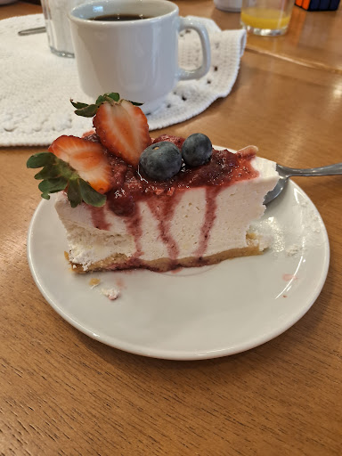 Chegando novamente a mesa do buffet, não me impressionou nenhuma torta ou bolo, nada bem elaborado, nenhum cheescake ou alguma torta que você possa dizer "Nossa, valeu apena", tudo bem simples, nada que valha 40,00 reais o quilo. Novamente perdido com os produtos, não tinha plaquinhas, tinha um quitute de pão de forma que acho que era uma rabanada, mas não tinha como saber. Peguei então um bolinho que tianha raspas de limão por cima, uma fatia de mousse de chocolate e outra de um bolo que tinha doce de leite em cima, provavelmente um bolo churros.