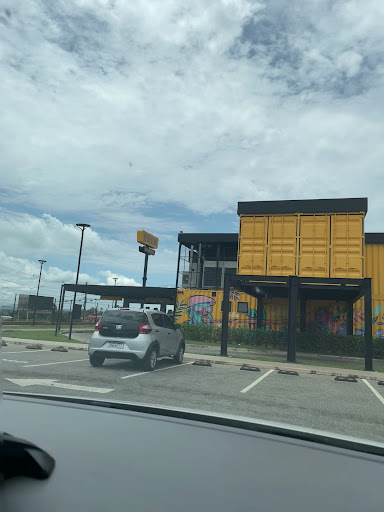 Read moreRazoável. O local tem um aspecto mais requintado, mas já está perdendo pro girafas na qualidade dos sanduiches. O espaço não foi bem planejado. Do estacionamento até o interior do restaurante, não há caminho para pedestres, que precisam passar por entre carros e totens do drive thru, ou desviar por uma calçada localizada no extremo oposto (uma volta desnecessária e desconfortável), que muitas vezes está inutilizável por conta da irrigação da grama, que molha quem passar por ali. Os totens de auto atendimento no interior ficam muito próximos (entre si e da porta), então sempre que há um casal ou amigos pedindo junto fica desagradavelmente constrangedor ocupar o totem ao lado, pois sobra apenas metade do espaço. Não é raro precisar operar a máquina de cartão com uma pessoa bem na frente dela. Claro que isso é uma falta de bom senso do usuário, mas o planejamento do espaço é justamente para ficarmos imunes a isso e com mais conforto. Quando mais de três pessoas chegam ao mesmo tempo (às vezes casais com ou sem filhos), o espaço dos totens fica extremamente desagradável e pior ainda quando chove. Contratem um arquiteto para a...