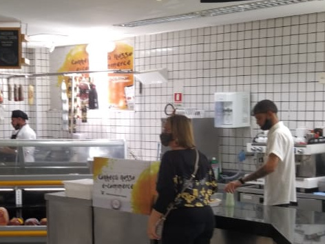 Acabo de sair da padaria e parece que nada mudou, como pode ser visto nas fotos. Um outro funcionário, perto de mim, ao me ver tirando a foto, rapidamente colocou a máscara. Durante os 5 minutos que permaneci no local, esses funcionários estavam sem máscaras, lidando com alimentos e atendendo pessoas. Um deles era o mesmo da outra vez. O outro eu não me lembro.