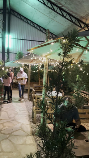 Chegamos e fomos procurar um lugar pra sentar, fomos na área perto da “cozinha e caixa” não tinha mesa, subimos uma escada e descobrimos que era o bar, mesas escuras e desconfortáveis, vimos que no gramado também haviam mesas porém estava frio preferíamos ficar lá dentro mesmo. Fomos até o caixa fazer o pedido a moça não deu nem boa noite, minha amiga perguntou como funcionava ela disse “ aqui embaixo é a comida e lá encima bebida alcoólica se você for pagar em dinheiro só aceita aqui embaixo (??) lá é só cartão. Vale refeição acréscimo de 10% mas você precisa informar antes de pagar.