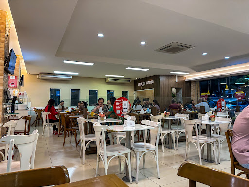 Read moreApesar de ser muito requisitada no bairro é produtos muito bons tem pontos importantes a melhorar... 1- buffet do almoço, as 14:30 começam a recolher o buffet pra colocar o da janta ou seja quem almoça tarde não pode contar aqui. 2- tem um ar condicionado de uns 12000 BTUs bem ao lado de onde fica o buffet ou seja a geralmente se pega a comida fria, variedade de carnes simples, tem menos talheres que cubas exemplo, tem 1 colher pra arroz branco, temperado e integral o que acaba misturando algumas comidas...fui pegar uma toscana é tava cheia de cenoura ralada que estava bem ao lado um do outro. 3- pra mim o mais crítico os pratos são de PLÁSTICO, aqueles pratos que a gente tem quando criança pra não quebrar é dura até ficar maior de idade. Estrutura deixa a desejar, porta do banheiro com fechadura sem segurança, teto do banheiro masculino de gesso truncado podendo cair a qualquer momento, no momento que fui não havia papel higienico no banheiro e nem para enxugar as mãos, pra secar a mão tem um aparelhos de ar que faz um barulho gigante(incomoda dá pra escutar da calçada) torneira da pia sem ralo na ponta vc liga é cai água parecendo uma bica, molha tudo. É no salão a quantidade de meses e cadeiras deixa pouco espaço para locomoção dentro da loja um cadeirante terá dificuldade de se locomover aqui dentro. Resolvendo esses pontos seria uma delicatessen com nível...