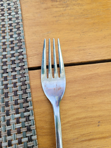 Ao chegar, pedi um couvert que demorou perto de uma hora para ser servido e quando chegou com os talheres, o garfo estava claramente sujo, vide foto, mesmo sendo trazido dentro de uma embalagem de papelão.