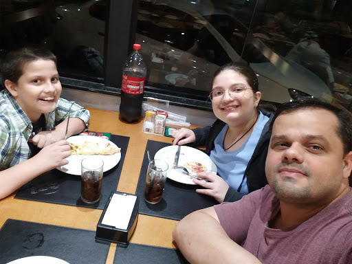 Após já sentados e comendo, fomos convidados a trocar de mesa, pois uma senhora fez reclamação que estava faltando mesas e cadeiras na reserva dela e estávamos ao lado. Após o contratempo, sentamos noutra mesa que havia pessoas "cuspindo" na janela, além de tacar pizza para trás, atingindo nossa mesa. Total falta de respeito com o estabelecimento e com os pagantes da unidade.